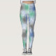 These leggings have a mid-century modern design of starbursts in glaucous (blue), grey, light blue, and green.