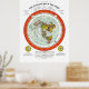 Map of the globe stretched and flattened into a circular plane (azimuthal projection), with two moveable arms to calculate time in places around the world.
