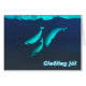 Features three narwhals, Monodon monoceros, swimming under the Arctic ice. Icelandic text reading "Gleðileg jól" (Merry Christmas) appears in glowing blue and white.The Inuit are commonly referred to as Eskimo, but that term is now disfavored as it is considered to be pejorative. The narwhal is related to the Beluga whale and lives in the Arctic year-round. They are found primarily in the waters of Greenland and Canada rarely south of 65°N latitude. Males weigh up to 1,600 kilograms (3,500 lb), females weigh around 1,000 kilograms (2,200 lb). The largest narwhal ever found weighed 3,500 pounds. They are shaped like a beluga and have about four inches of insulating fat. Narwhals normally congregate in groups of about five to ten individuals. In the summer, several groups come together forming larger aggregations. Narwhal is derived from the Old Norse word nár, meaning “corpse”, referring to the animal’s greyish, mottled pigmentation, like that of a drowned sailor. Narwhal are darkest when young becoming whiter with age. The most conspicuous characteristic of the male narwhal is its single 2–3 metre (7–10 ft) long twisted tusk. It is an incisor tooth that projects from the left side of the upper jaw and forms a left-handed helix. The narwhal’s scientific name, Monodon monoceros, is derived from “one-tooth one-horn.” The tusk can be up to 3 metres (9.8 ft) long—compared with a body length of 4–5 metres (13–16 ft)—and weigh up to 10 kilograms (22 lb). About one in 500 males has two tusks, which occurs when the right incisor, normally small, also grows out. A female narwhal may also produce a tusk, but this occurs rarely, and there is a single recorded case of a female with dual tusks. This behaviour is thought to maintain social dominance hierarchies. At times, male narwhals rub their tusks together in an activity called “tusking.” The reason for this behaviour is unknown; it may be to “scratch an itch,” (the base of the tusk is usually infested with lice); or tusk crossing may be a friendly greeting. The most broadly accepted theory for the role of the tusk is similar to the mane of a lion or the tail feathers of a peacock. It may help determine social rank, maintain dominance hierarchies or help young males develop skills necessary for performance in adul roles. Narwhals have rarely been observed using their tusk for fighting or other aggressive behaviour or for breaking sea ice in their Arctic habitat. Narwhal usually proceed at a leisurely pace, slowly breathing and rolling, but are remarkably quick when they feel threatened. Sometimes they travel in small family groups and communicate by means of a great variety of squeals, trills, whistles, and clicks. Narwhals have a relatively restricted and specialised diet. Their prey is predominantly composed of Greenland halibut, polar and Arctic cod, shrimp and Gonatus squid. Additional items found in stomachs have included wolffish, capelin, skate eggs and sometimes rocks, accidentally ingested when whales feed near the bottom. How narwhal catch their prey is unknown. Some scientists believe narwhal stun their prey with sound as do dolphins . Narwhal exhibit seasonal migrations with high fidelity of return to preferred ice-free summering grounds, usually in shallow waters. In the winter, they are found primarily in offshore, deeper waters under thick pack ice, surfacing in narrow fissures in the sea ice, or leads. Narwhal from Canada and West Greenland winter regularly in the pack ice of Davis Strait and Baffin Bay along the continental slope with less than 5% open water and high densities of Greenland halibut. Feeding in the winter accounts for a much larger portion of narwhal energy intake than in the summer and, as marine predators, they are unique in their successful exploitation of deep-water arctic ecosystems. Most noteable of their adaptations is the ability to perform deep dives. When on their wintering grounds, the narwhals make some of the deepest dives ever recorded for a marine mammal, diving to at least 800 metres (2,400 feet) over 15 times per day with many dives reaching 1,500 metres (4,500 feet). Dives to these depths last around 25 minutes, including the time spent at the bottom and the transit down and back from the surface. In the shallower summering grounds, narwhals dive to depths between 30 and 300 metres (90–900 feet). The only predators of narwhals besides humans are polar bears and orcas. Inuit people are allowed to hunt this whale species legally for subsistence. The northern climate provides little nutrition in the form of vitamins which can only be obtained through the consumption of seal, whale, and walrus. Almost all parts of the narwhal, meat, skin, blubber and organs, are consumed. Mattak, the word for raw skin and blubber, is considered a delicacy, and the bones are used for tools and art. In some places in Greenland such as Qaanaaq, traditional hunting methods are used, and whales are harpooned from handmade kayaks. In other parts of Greenland and northern Canada high-speed boats and hunting rifles are used. While populations appear stable, the narwhal has been deemed particularly vulnerable to climate change due to a narrow geographical range and specialised diet. Narwhals that have been brought into captivity tend to die quickly. In Inuit legend the narwhal’s tusk was created when a woman with a harpoon rope tied around her waist was dragged into the ocean after the harpoon had struck a large narwhal. She was transformed into a narwhal herself, and her hair, that she was wearing in a twisted knot, became the characteristic spiral narwhal tusk. Some mediaeval Europeans believed narwhal tusks to be the horns from the legendary unicorn. As these horns were considered to have magic powers, such as the ability to cure poison and melancholia, Vikings and other northern traders were able to sell them for many times their weight in gold. The tusks were used to make cups that we
