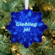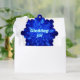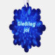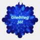 A swarm of blue fractal snowflakes. Icelandic text reading "Gleðileg jól" (Merry Christmas) appears in glowing blue and white. Add your own additional text on the reverse side.