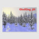 Features an image of the mid-winter taiga (boreal forest). Cold and covered in snow. Low on the horizon a pale, yellow sun hovers just above the mountains. A snowshoe hare runs for cover in the foreground. Icelandic text reading "Gleðileg jól" (Merry Christmas) appears in red.