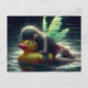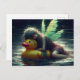 A fairy fell asleep on her duck pool float in a glitch style of art