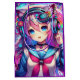 Anime glitchcore girl with headphones and cat ears colourful purple, pink, blue and green ai art birthday gift bag.