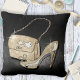 Add a touch of elegance to your room for a Sweet Sixteen or other everyday with this throw pillow featuring glittering fashion accessories, (high heel shoes and purse) in a trendy retro style against an eye-catching background of shining black. Reverse has a gold glitter pattern. Search ID675 to see coordinating products and colour options for this design.