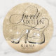 Celebrate your Sweet Sixteen event in style with this table confetti featuring a unique decorative font in a trendy retro style, eye-catching backgrounds in both shiny and glittering gold with chic fashion accessories accents. The striking number 'Sixteen' in a sparkling gold glitter effect is optional and can be deleted to use the template for other occasions. Use the provided template to add a celebrants name and birthdate. Search ID675 to see other products and colour options for this design.