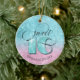 Add a touch of elegance to your room for a Sweet Sixteen with this ceramic ornament featuring a unique decorative font in a trendy retro style, an eye-catching gradient background of glittering teal through pink. The striking number 'Sixteen' in a sparkling teal glitter effect is optional and can be deleted to use the template for other occasions. Use the provided template to add a celebrants name and birthdate. Search ID675 to see other products and colour options for this design.