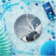 This design bag has ornaments with an elegant sparkle and look of glitter. In various shades of blue, this bag features a design that says, 'Happy Holidays'.