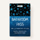 Blue metallic faux glitter sparkles behind an easy to read and update bathroom hall pass. Update the text to show the teacher and school name, as well as the purpose of the badge. Available in many other sparkly colours and star designs.