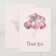 Thank you card with an illustration of a bunch of balloons in pink and silver grey colours.