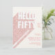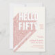 The invitation prominently displays "HELLO FIFTY" in a large, bold, and modern font, immediately establishing the celebratory tone and the significance of the 50th birthday. The elegant creamy white background adds a vibrant and feminine touch, making it perfect for a girly celebration. The birthday girl's name is clearly displayed, followed by the event details: date, time, and location. The RSVP information is also included, ensuring guests can easily respond. The overall design is clean and modern, with a focus on clear communication and a fun, energetic vibe.