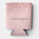 Glitter Blush Pink Simple Script Monogram Name Can Cooler