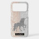 Silver glitter unicorn on modern glitter bokeh ombre with your name.