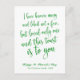 A simple calligraphy design, features a traditional Irish toast: I have known many, and liked not a few, but loved only one and this toast is to you.