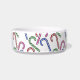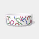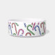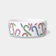 This is a heavy, durable bowl decorated with Tibbies of many colors, the perfect size for hungry/thirsty Tibs. The design is interesting and printing clear.