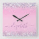 Glitter Confetti Personalised Pink Square Wall Clo Square Wall Clock