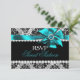 Glitter Damask & Teal Jewel Bow Sweet 16 RSVP Card