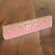 Glitter-look name plate with place for name and occupation. Easily change background colour if needed.