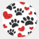 Glitter Dog Paw Prints And Red Hearts Classic Round Sticker