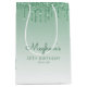 This chic 30th birthday party gift bag features a sparkly green faux glitter drip border and green ombre background. Personalise it with her name in handwriting script, along with her birthday and date below.