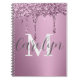 Glitter Drip Rose Blush Girly Pink Monogram Name Notebook