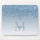 Glitter Drips Blue Sparkle Monogram Elegant Script Mouse Mat