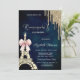 Glitter Drips,Eiffel Tower Bow Navy Blue Invitation