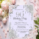 A modern, chic, and glamourous with silver glitter drips, and flowers on a lavander background.