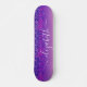 Personalized girly skateboard featuring purple and hot pink faux glitter dripping against a purple background. You can add your first name in a trendy white script.