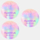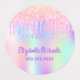 A trendy rainbow coloured, holographic background with unicorn and rainbow pastel colours in pink, purple, rose gold, mint green. Decorated with faux glitter drips in rose gold, pink and purple. A bookplate, label for textbooks, school books or marking your kids belongings, lunchbox, school supplies. Personalise and add a name and a phone number, written with a girly modern hand lettered style script. Purple coloured letters.