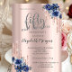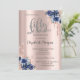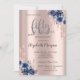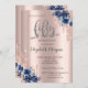 Glitter Drips Rose Gold Blue Flower 50th Birthday Invitation
