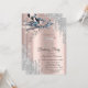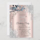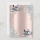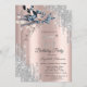 A modern, chic, and glamourous with silver glitter drips, and winter flowers on a rose gold background.