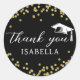 These Glitter Dust Confetti Graduation Thank You Classic Round Sticker add a sparkling touch to your celebration. Featuring glitter dust confetti on a black background, "Thank You" in elegant Kimberly script, and the graduate's name in casual David Libre font , these personalised favours are perfect for making guests feel appreciated at any graduation party.