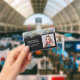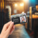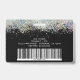 A glitter employee ID badge design that can be customised with your company name and a barcode.