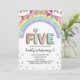 Glitter FIVE Girly Rainbow Sequin 5th Birthday Invitation