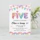 Glitter FIVE Girly Rainbow Sequin 5th Birthday Invitation