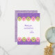 End your celebration off right with this glittery, bright invite. It's perfect for any age or party thank you. It has bright purple glitter background on the top and the bottom of this thank you. Along the top & bottom there is a row of five (5) flowers alternating in colours of pink then green. Check out this line in thank you notes, labels, shirts & more.