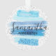 Glam up your life with this glittering brush stroke beauty. Shimmering blues with black polka dots are chic and elegant.