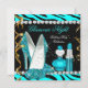 Glitter Glamour Night Teal Blue Gold Black Zebra Invitation