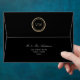 Simple, elegant, chic glitter gold and black wedding invitations 5x7 envelope with return address, modern calligraphy and monogram at the top back.
