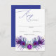 Glitter Gold Blue Purple Peacock Plume Wedding RSVP Card