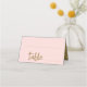 These custom printed wedding table place cards feature a blush pink background and gold glitter script lettering with a matching gold glitter interior. Please note these printed products have a glittery look only and are not made with real glitter.