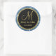 A Personalised Monogrammed Wedding envelope seal in a shimmery blue and gold frame around black adds the right touch of elegance to your wedding mail.The custom Monogram Stickers can be used for your other wedding related mails too.The stylish Monogrammed Stickers look great as seals on party favours,thank you cards,gifts,etc .The glitter gold seal design looks exclusive and special.The gold glitter is only an effect artistically rendered.The text colour,font and size can be edited using the 'Customise it' option. Need help?Just contact me.