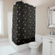 This shower curtain is shown in a black color with the faux glitter gold stars pattern.