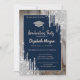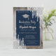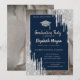 Glitter GradCap,Silver Drips,Marble Navy Blue Invitation
