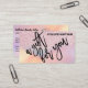 This is the perfect gift certificate business card for a trendy, stylish, girly, and modern businesswoman. This design features simple black brushstroke typography on a faux printed pink glitter with pink, peach, blue, and purple iridescent ombre gradient glamourous and chic background. It's the perfect way to allow your customers to buy a gift for their family and friends and at the same time promote your business.