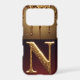 Elegant gold monogram letter set against a rich burgundy background with dripping liquid gold and glitter accents. Luxurious, glamourous texture ideal for branding, invitations, holiday or premium product design.