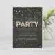 This festive New Year's Eve Party invitation design by The Spotted Olive™ features a pretty soft black background with an image of glittery confetti and the words "New Year's Eve Party" stylishly typeset featuring the word "Party" filled with an image of gold glitter. PLEASE NOTE: THIS DESIGN ONLY FEATURES A PRINTED IMAGE OF GLITTER; THERE IS NO PHYSICAL GLITTER USED OR INCLUDED; THERE ARE NO EMBELLISHMENTS. THIS IS A FLAT PRINTED INVITATION.