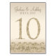 This modern table card design features faux gold glitter accents with a champagne background. Perfect for elegant and modern weddings. The table number cards go up to 30.