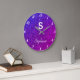 Glitter Monograms Purple Pink Elegant Gift Favour Large Clock