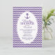 Modern anchor baby shower invitation featuring a purple FAUX glitter anchor set on a purple faux glitter chevron background for a baby girls baby shower. Perfect for a spring baby shower or summer baby shower. Flip our anchor baby shower invite over to view a matching back for an extra special touch.